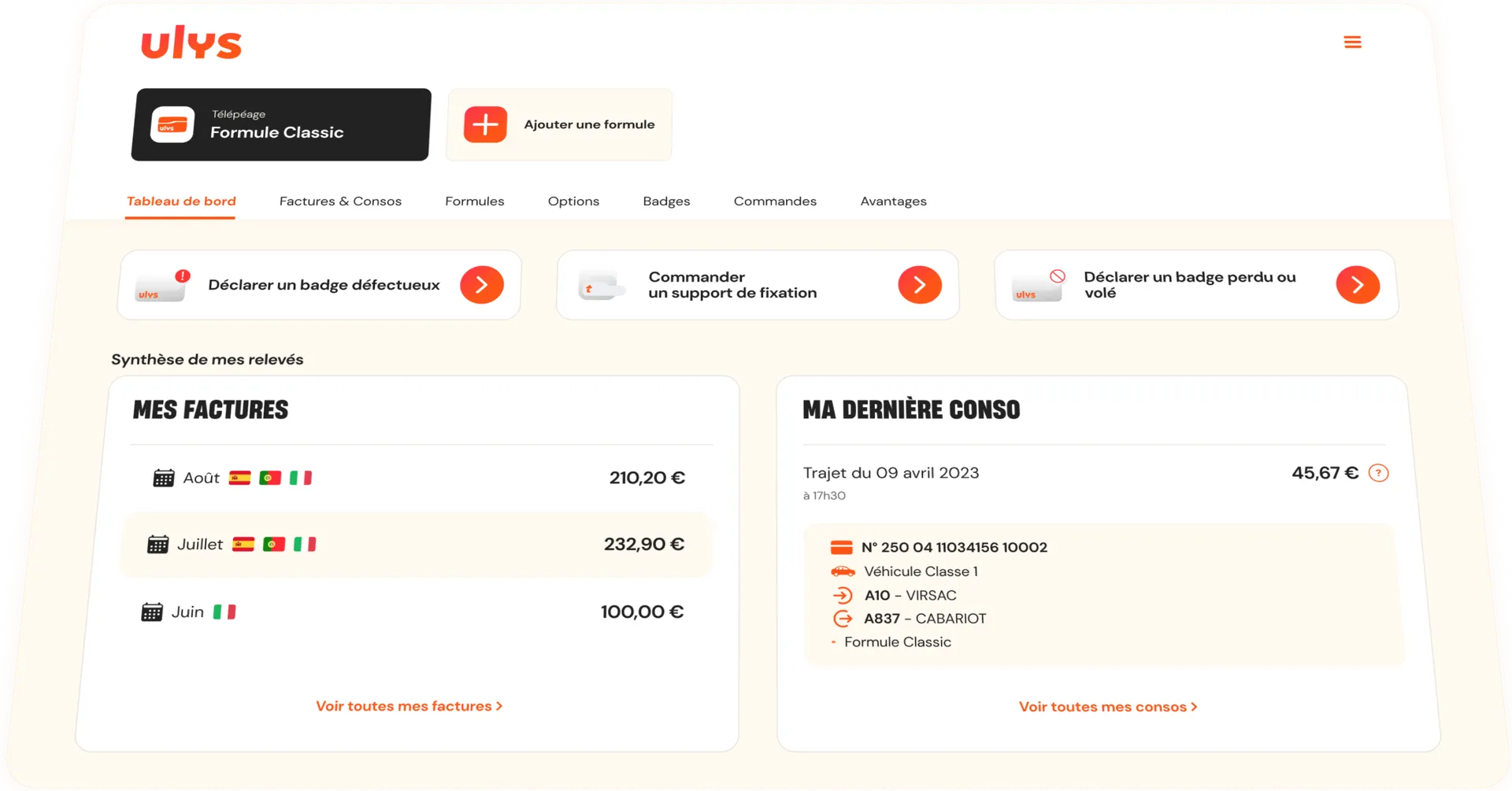 L'espace client Ulys, c'est un seul compte qui regroupe votre contrat, toutes les consommations, les factures et les informations de votre flotte d'entreprise.